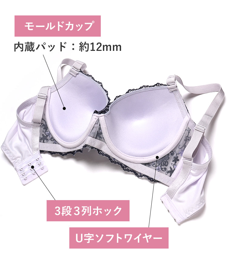 - 快適なソフトワイヤー – U字ソフトワイヤーを使用しており、ワイヤーの食い込みを軽減し、優しい着け心地です。