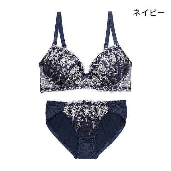 上品な刺繍と脇高設計で、エレガントで安定感のあるバストラインを叶えるブラ&ショーツ
