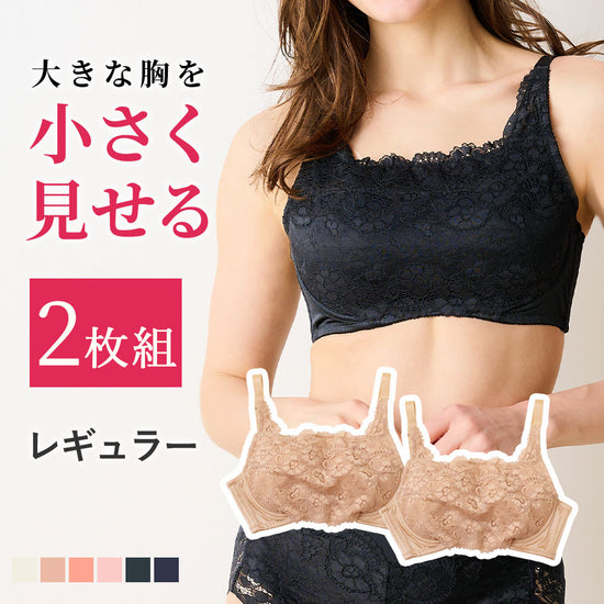 [今日発送]【2枚組】胸を小さく見せるレギュラーブラ【ベージュ】