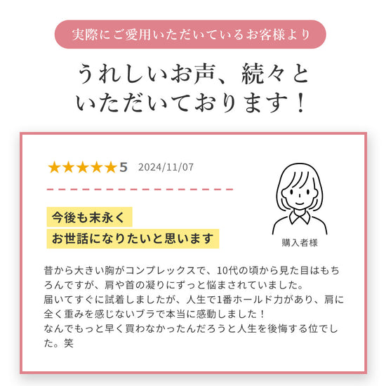 谷間をきれいに見せながら、バストの横流れを防ぐ機能性ブラジャー。