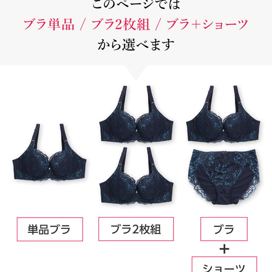 | サイズ | ブラ:B70 B75 B80 C70 C75 C80 D70 D75 D80 D85 E70 E75 E80 E85 E90 F70 F75 F80 F85 F90 ショーツ:M L LL |