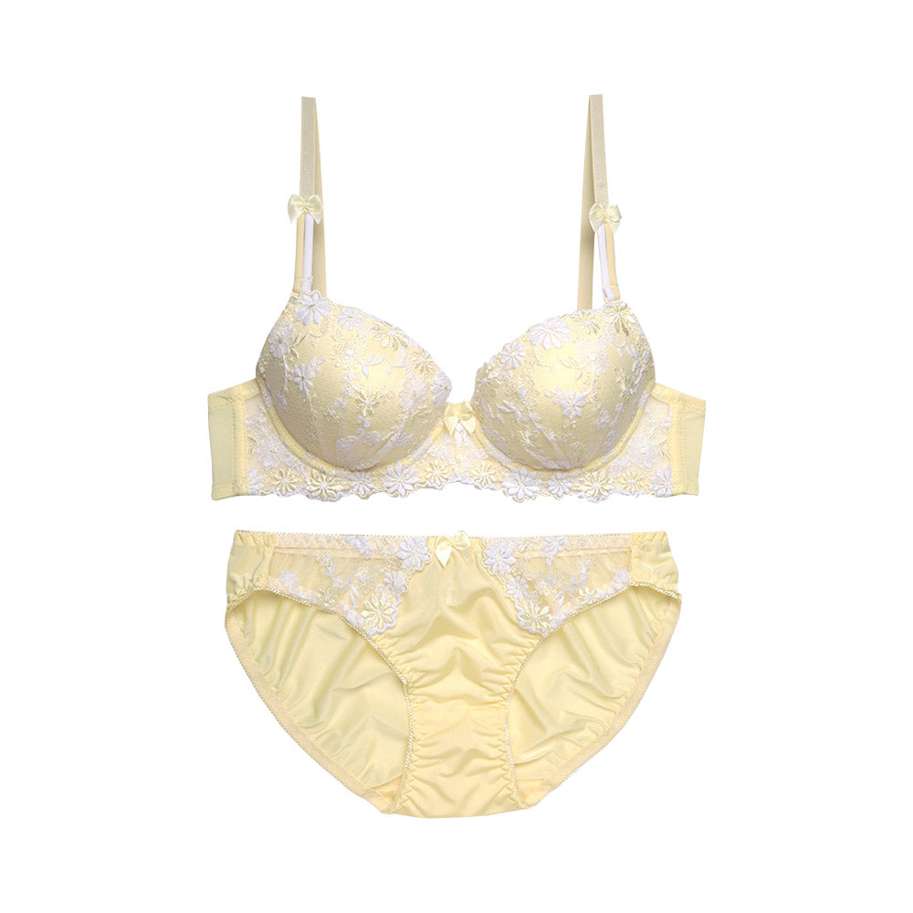 透けるレース素材とキュートなデザインで、胸元を華やかに彩るブラ&ショーツセット