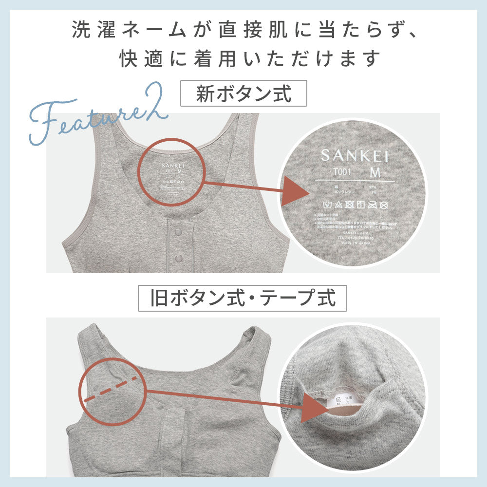 | 仕様 | 前ボタン:4段1列 パッド:内蔵パッドなし・薄丸ウレタンカップ(約5mm) ワイヤー:なし サイドボーン:なし |