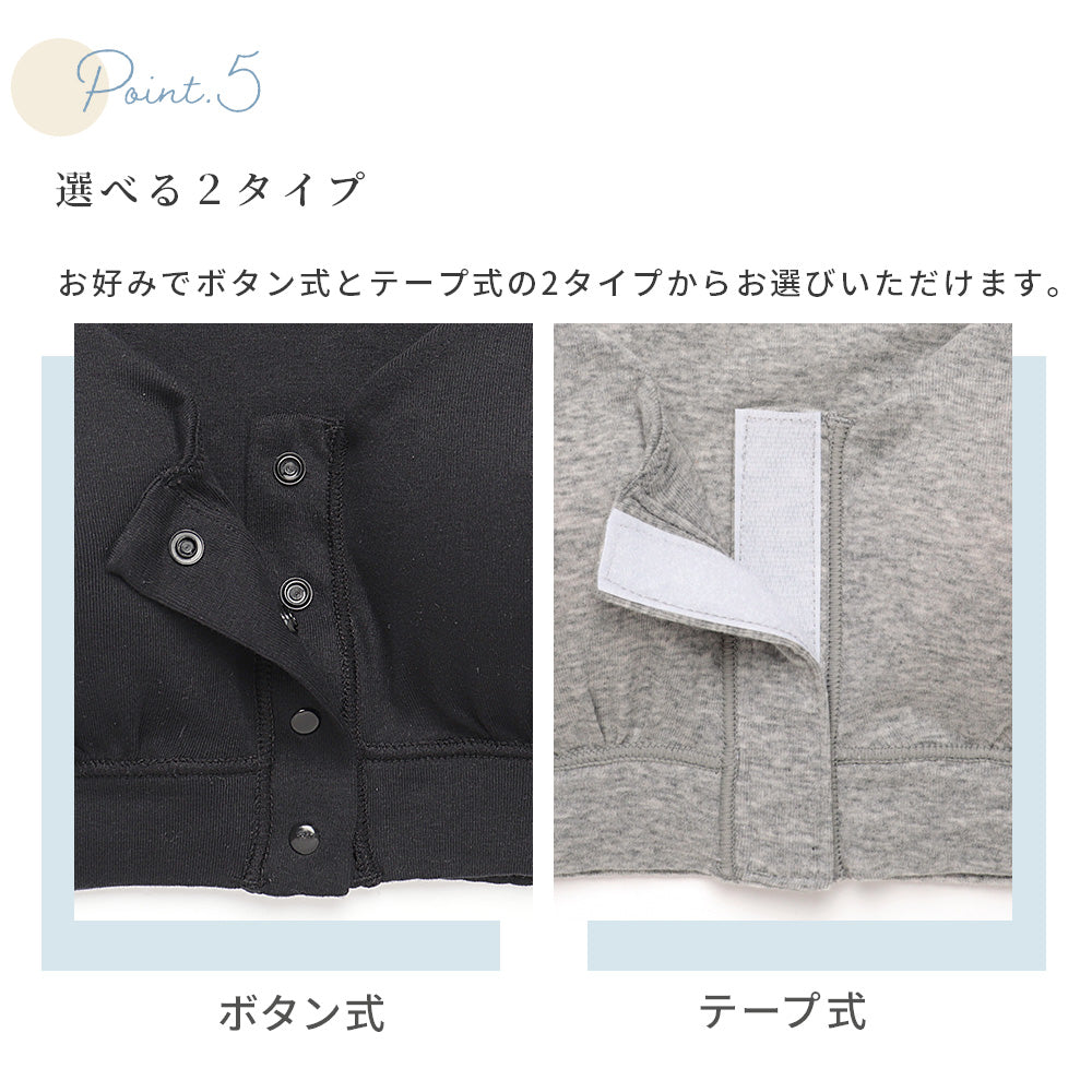 肌に優しい素材と、前開きデザインで快適に着脱できる仕様です。