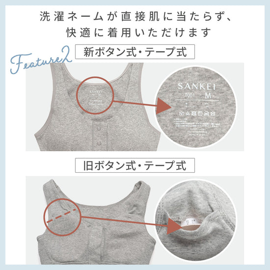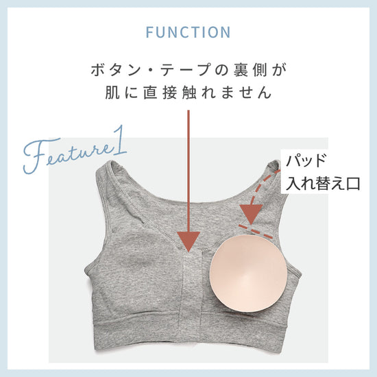 | 仕様 | 前ボタン:4段1列 パッド:内蔵パッドなし・薄丸ウレタンカップ(約5mm) ワイヤー:なし サイドボーン:なし |