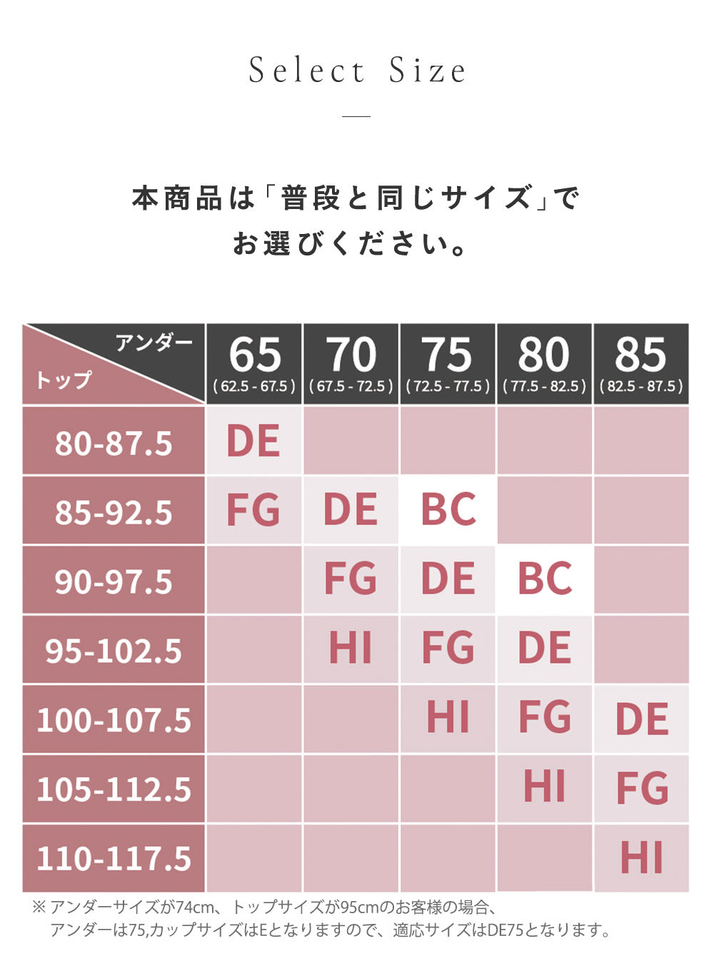 | サイズ | BC75 BC80 DE65 DE70 DE75 DE80 DE85 FG65 FG70 FG75 FG80 FG85 HI70 HI75 HI80 HI85 |