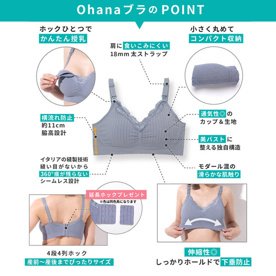 - 授乳後も使用できる – 産前産後のバスト変化に対応できる延長ホック付き