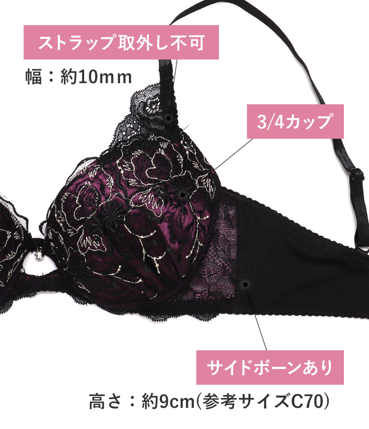- 3/4カップ – バストをしっかり包み込みながら、自然な丸みと美しい谷間をメイクします。