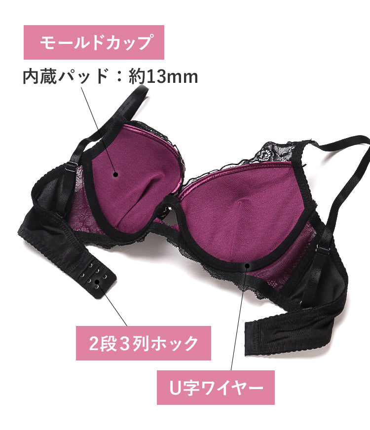 - 快適なモールドカップ – 内蔵パッドが約13mmで、自然なボリュームアップをサポートし、快適な着用感です。