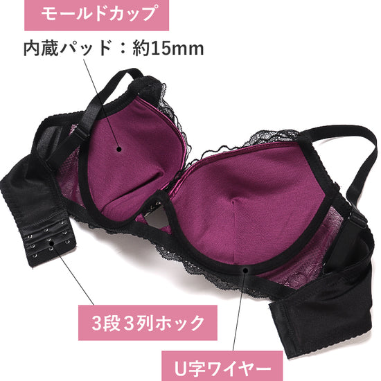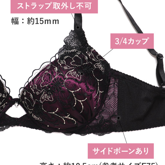 - フィット感抜群の3/4カップ – バストをしっかり包み込みながら、自然な丸みと美しい谷間をメイクします。