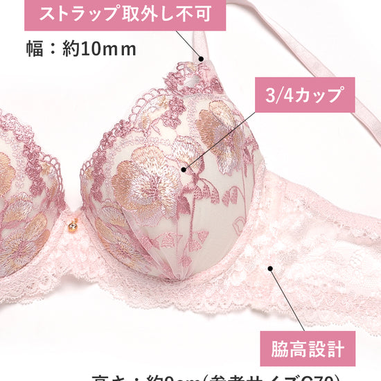 - フィット感抜群の3/4カップ – バストをしっかり包み込みながら、自然な丸みと美しい谷間をメイクします。