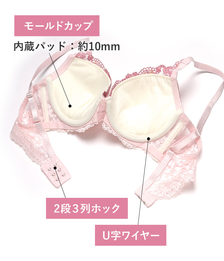 - 快適なモールドカップ – 内蔵パッドが約10mmで、自然なボリュームアップをサポートし、快適な着用感です。