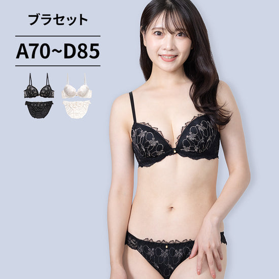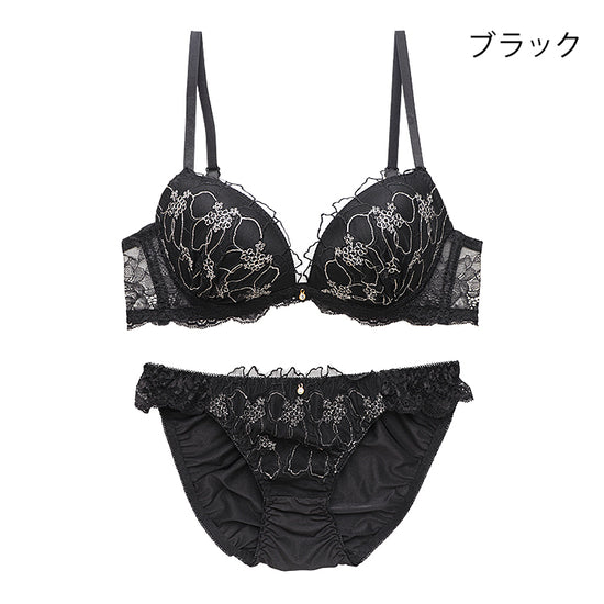 脇高ブラ&ショーツセット 花柄ラメ刺繍 【ABCDサイズ】 ba0961