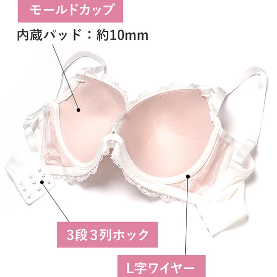 - 美しい谷間をメイク – L字ワイヤーがバストを中央に寄せ、より深く美しい谷間を演出します。