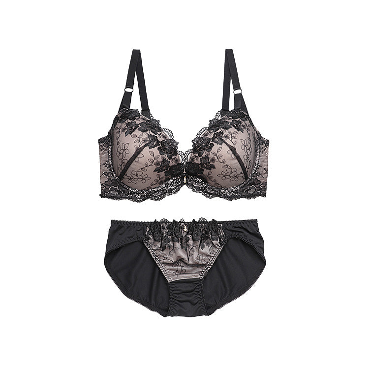 透け感のあるレースと脇高設計で、セクシーかつ安定感のあるバストラインを叶えるブラ&ショーツ