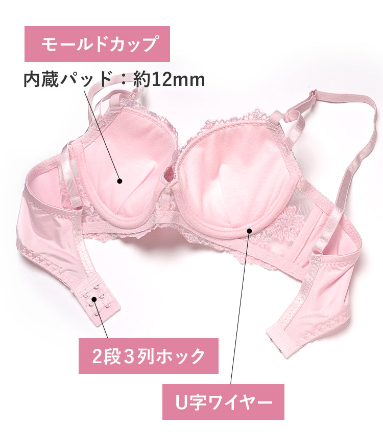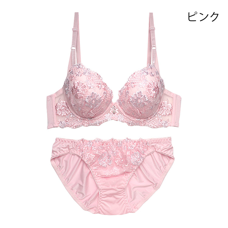 脇高ブラ&ショーツセット 花柄刺繍 【ABCDサイズ】 ba0973