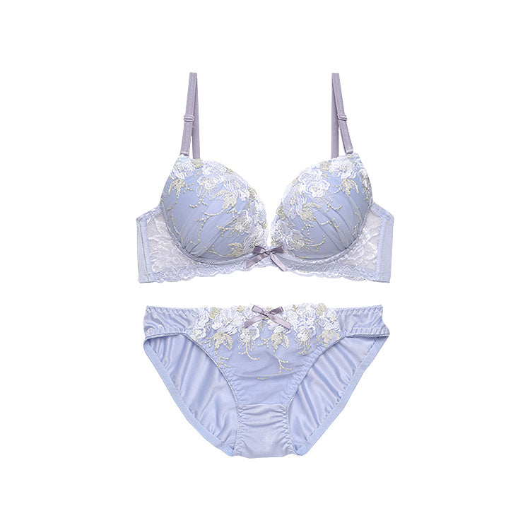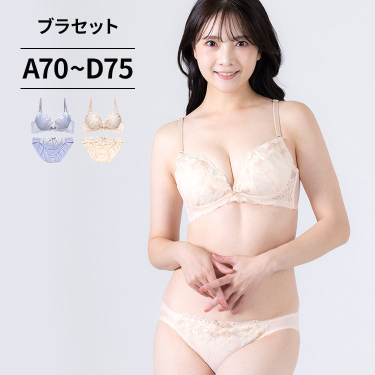 パステルカラーと繊細な花柄刺繍で、フェミニンで美しいバストラインを演出するブラ&ショーツ