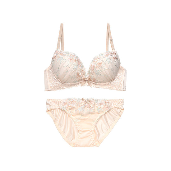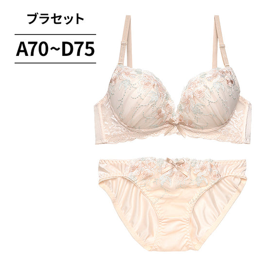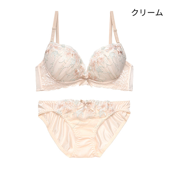 パステルカラーと繊細な花柄刺繍で、フェミニンで美しいバストラインを演出するブラ&ショーツ