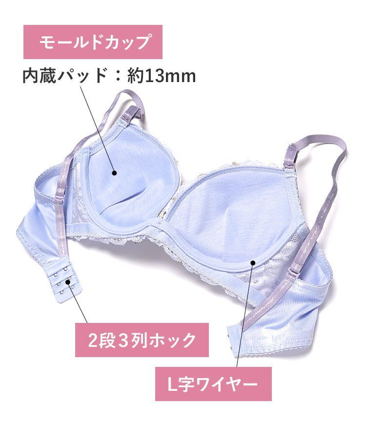 - 快適なモールドカップ – 内蔵パッドが約13mmで、自然なボリュームアップをサポートし、快適な着用感です。