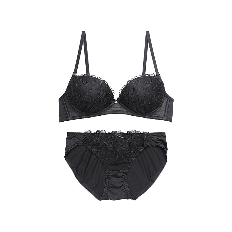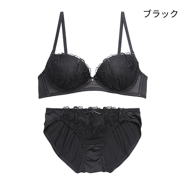 [11/11より順次発送]ノンワイヤーブラ&ショーツセット ハート柄刺繍 【S/M/L/LLサイズ】 ba0978a
