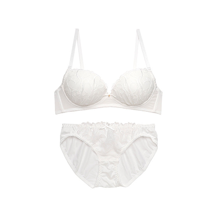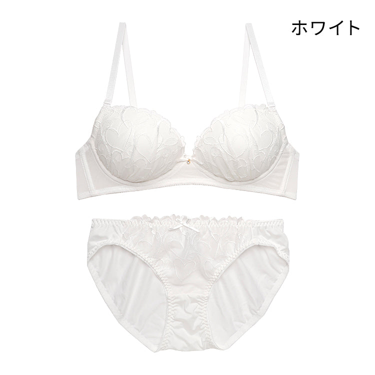 [11/11より順次発送]ノンワイヤーブラ&ショーツセット ハート柄刺繍 【S/M/L/LLサイズ】 ba0978b