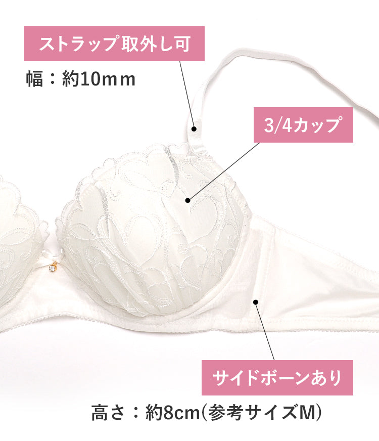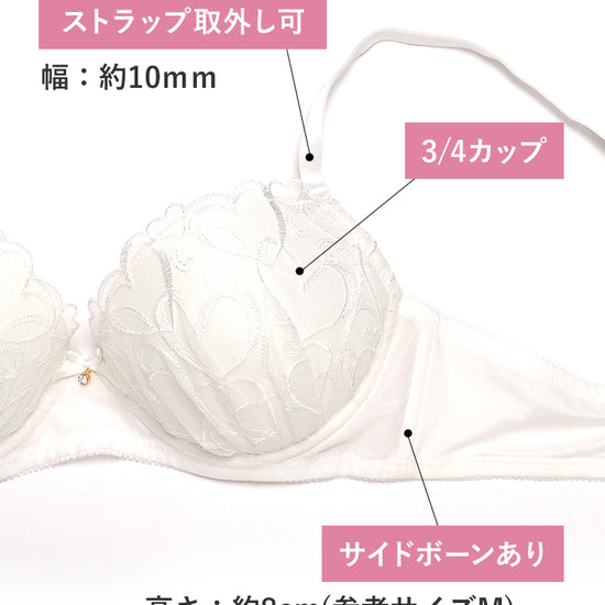 - 3/4カップ – バストを下から持ち上げ、自然な丸みと美しい谷間を形成します。