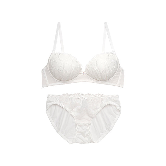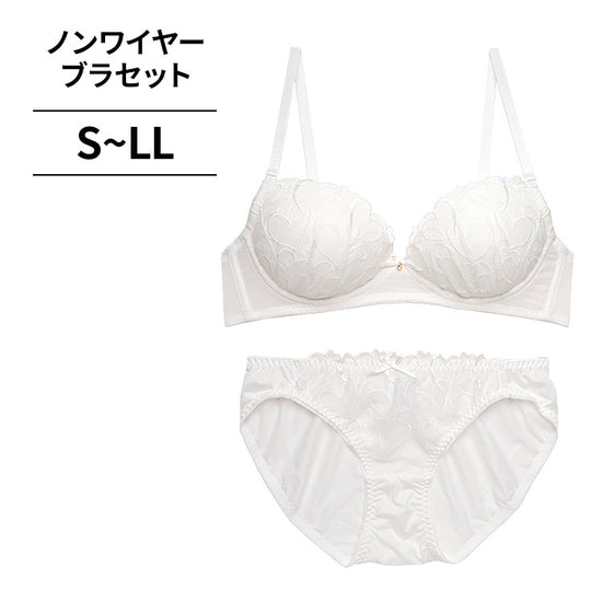 可愛らしいデザインとノンワイヤーの快適さを両立したブラ&ショーツセット