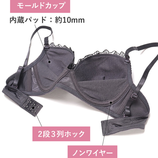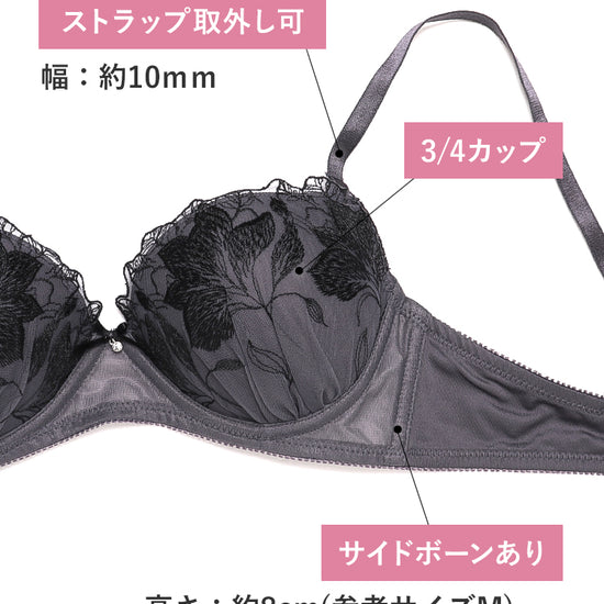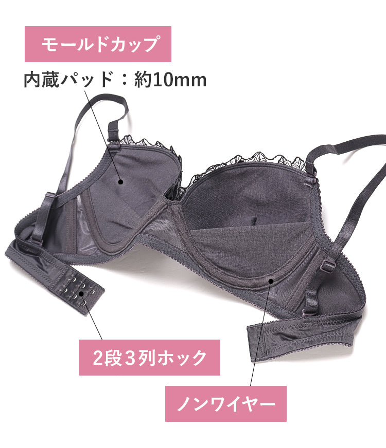 - 自然なシルエット – 3/4カップとモールドカップが、自然な丸みのある美しいバストラインを形成します。