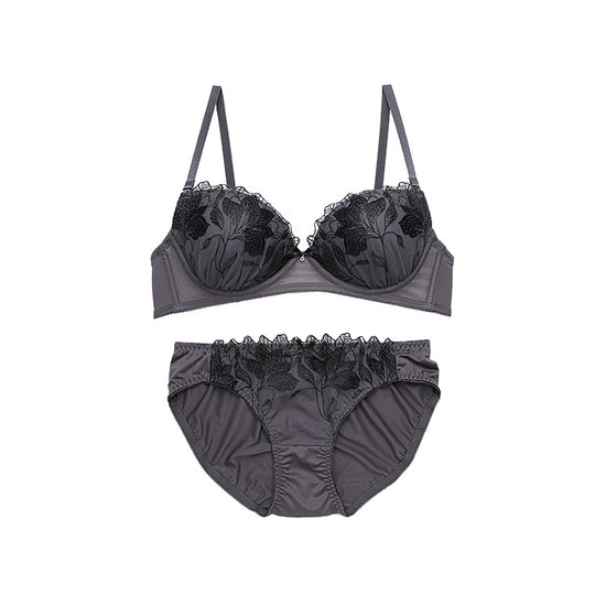 ノンワイヤーの快適さとエレガントな花柄レースを両立させたブラ&ショーツセット