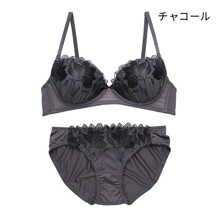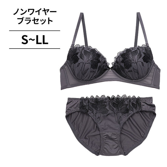 [11/11より順次発送]ノンワイヤーブラ&ショーツセット 花柄刺繍 【S/M/L/LLサイズ】 ba0979a