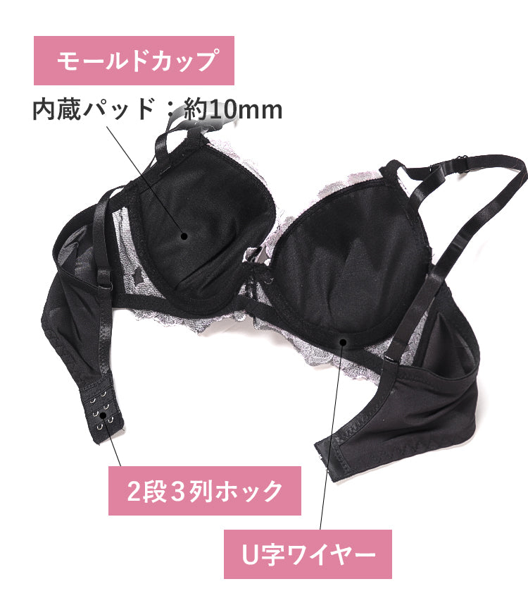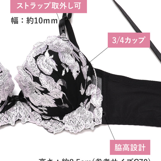 - フィット感抜群の3/4カップ – バストをしっかり包み込みながら、自然な丸みと美しい谷間をメイクします。