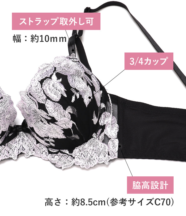 脇高ブラ&ショーツセット 花柄刺繍 【ABCDサイズ】 ba0980a