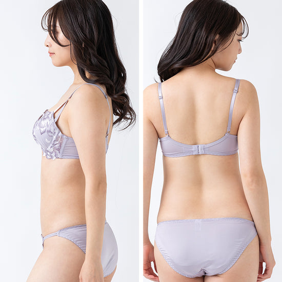 透け感のある花柄レースと脇高設計で、上品で美しいバストラインを演出するブラ&ショーツ