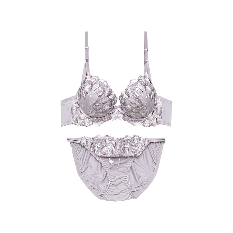 透け感のある花柄レースと脇高設計で、上品で美しいバストラインを演出するブラ&ショーツ
