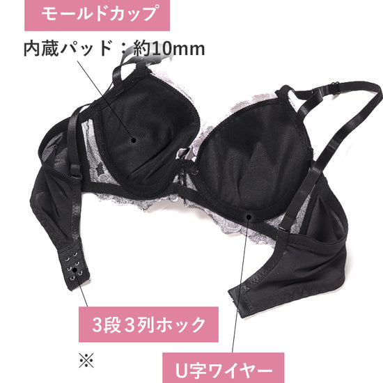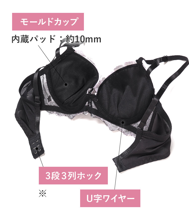 - フィット感抜群の3/4カップ – バストをしっかり包み込みながら、自然な丸みと美しい谷間をメイクします。