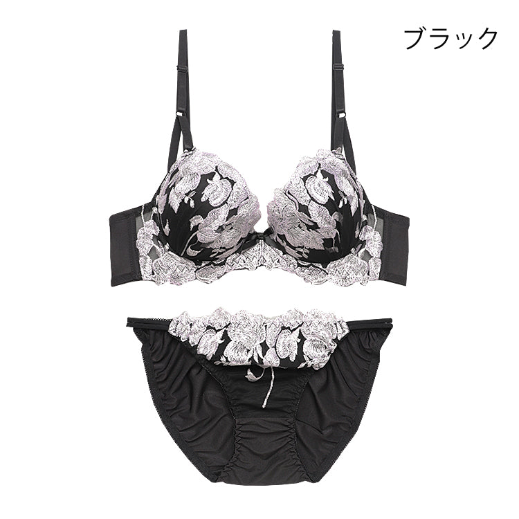 脇高ブラ&ショーツセット 花柄刺繍【EFサイズ】ba0981a