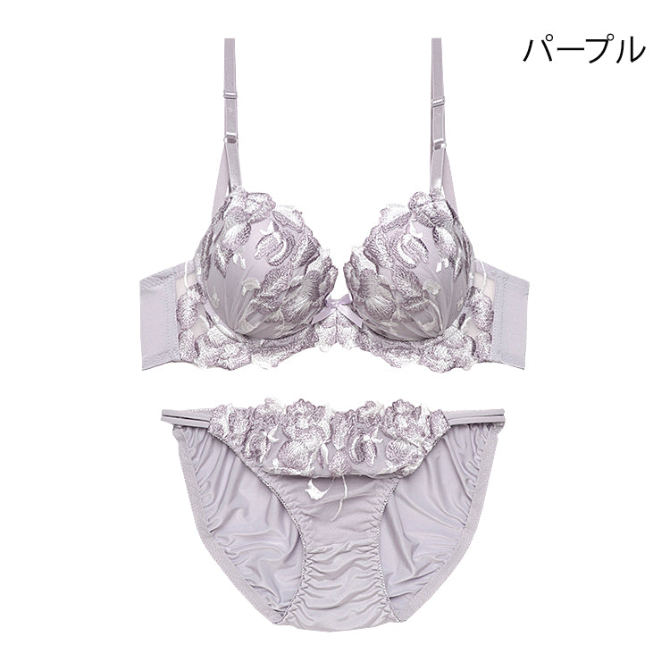 脇高ブラ&ショーツセット 花柄刺繍【EFサイズ】ba0981b
