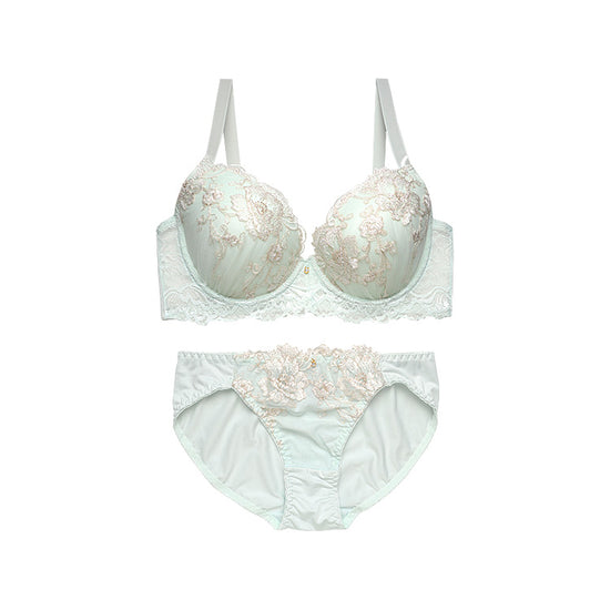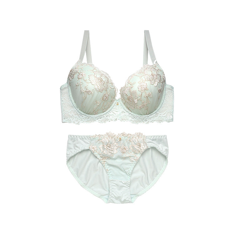 柔らかな色合いと繊細なきらめきで、エレガントなバストラインを演出する脇高ブラ&ショーツ