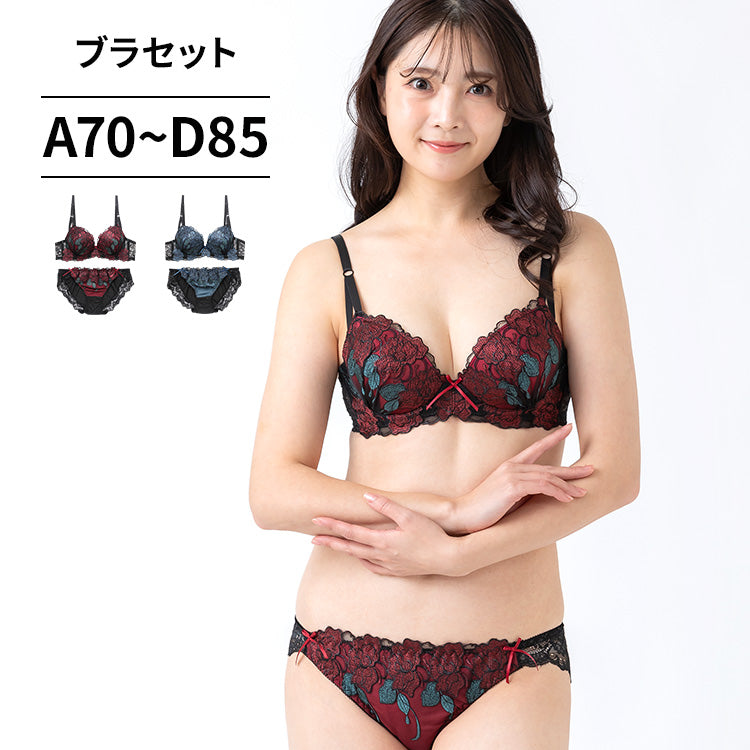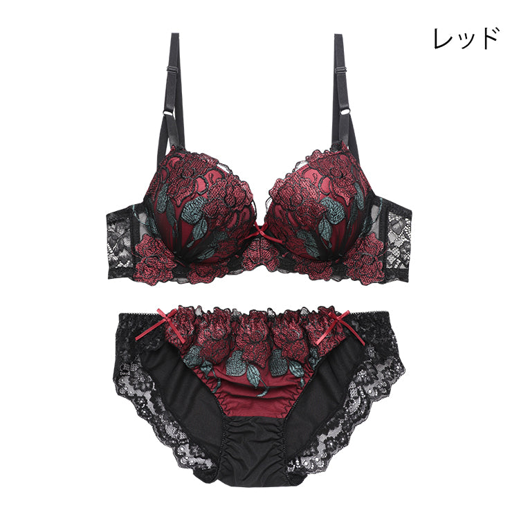 脇高ブラ&ショーツセット ローズ柄刺繍 【ABCDサイズ】 ba0987