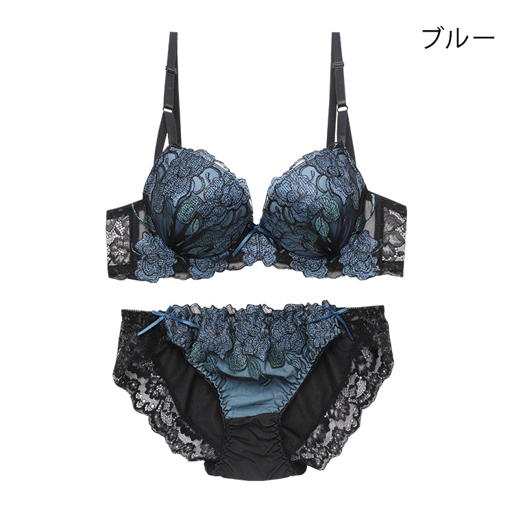 脇高ブラ&ショーツセット ローズ柄刺繍 【ABCDサイズ】 ba0987b