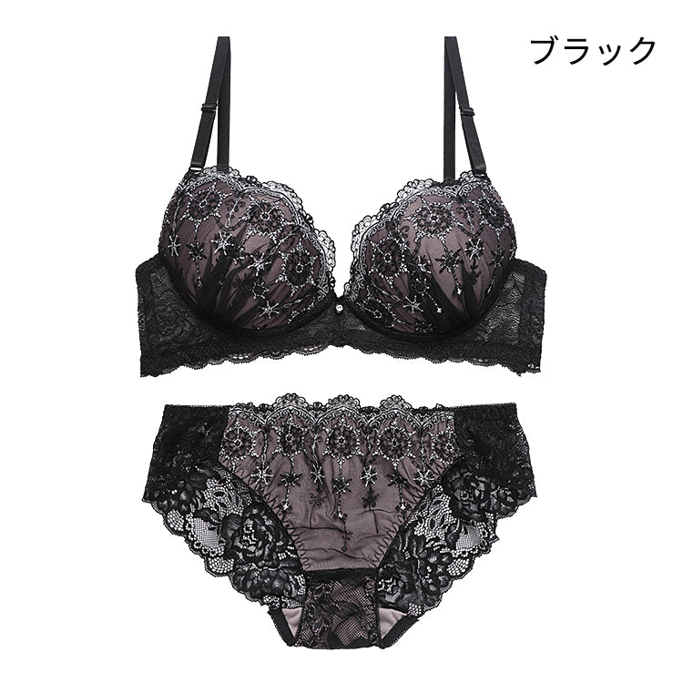 脇高ブラ&ショーツセット 雪柄刺繡 【ABCDサイズ】 ba0988