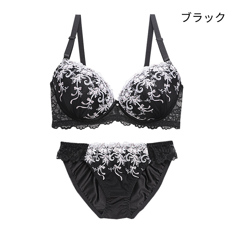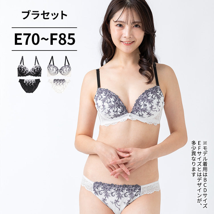 脇高ブラ&ショーツセット 花柄刺繍【EFサイズ】ba0991