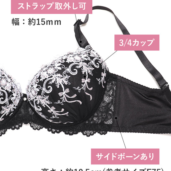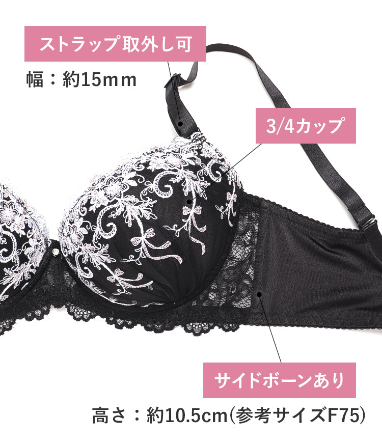 - 3/4カップ – バストをしっかり包み込みながら、自然な丸みと美しい谷間をメイクします。
