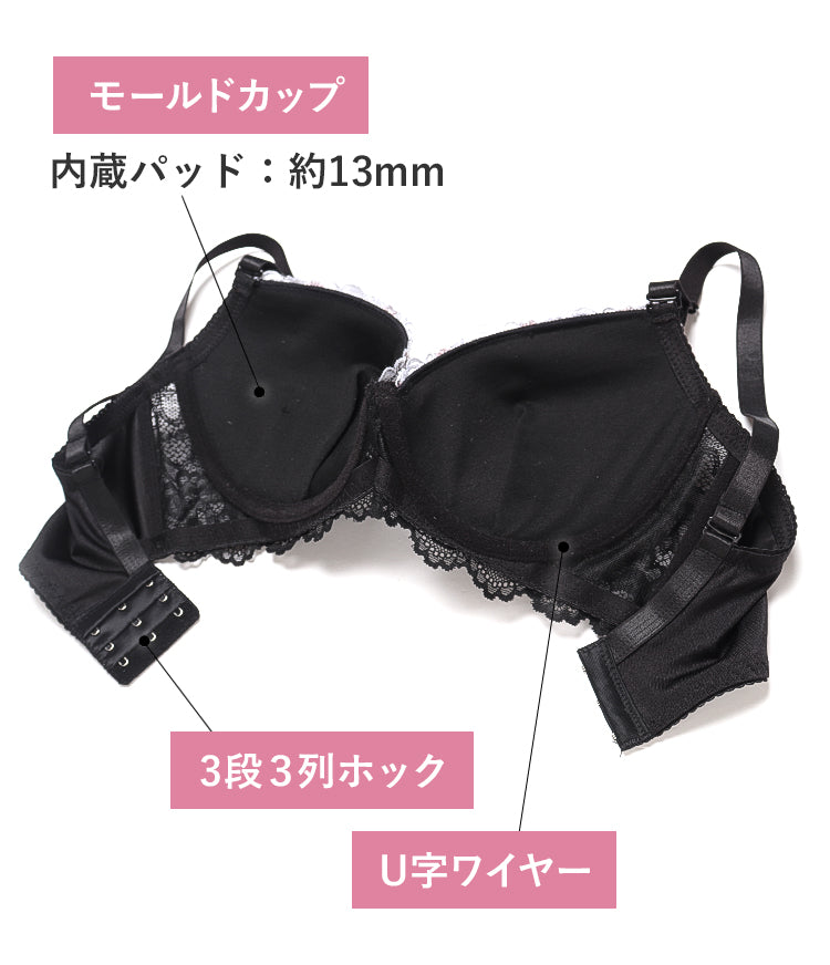 - 快適なモールドカップ – モールドカップと内蔵パッド(約13mm)で、自然なボリュームアップをサポートし、快適な着用感です。