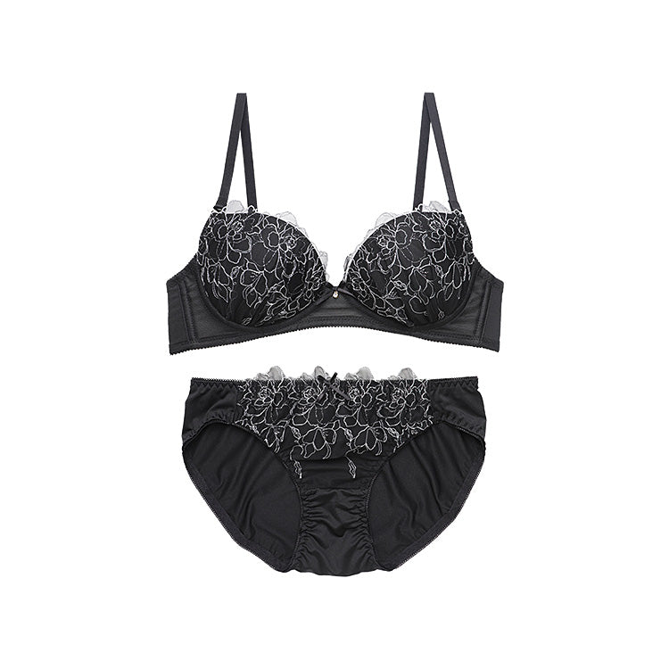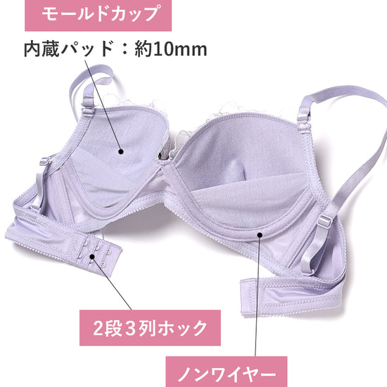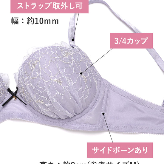 ノンワイヤーで快適な着け心地と、華やかなデザインを両立したブラ&ショーツセット