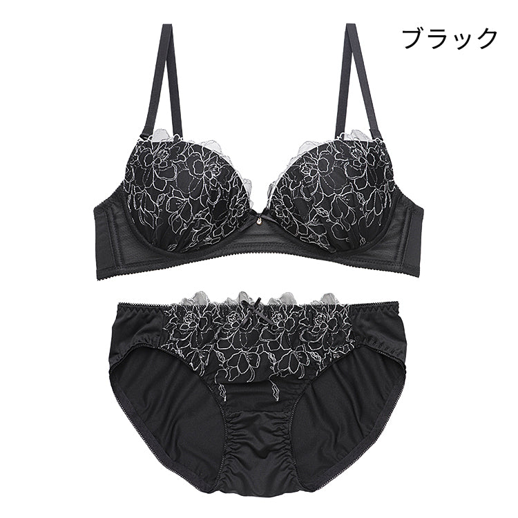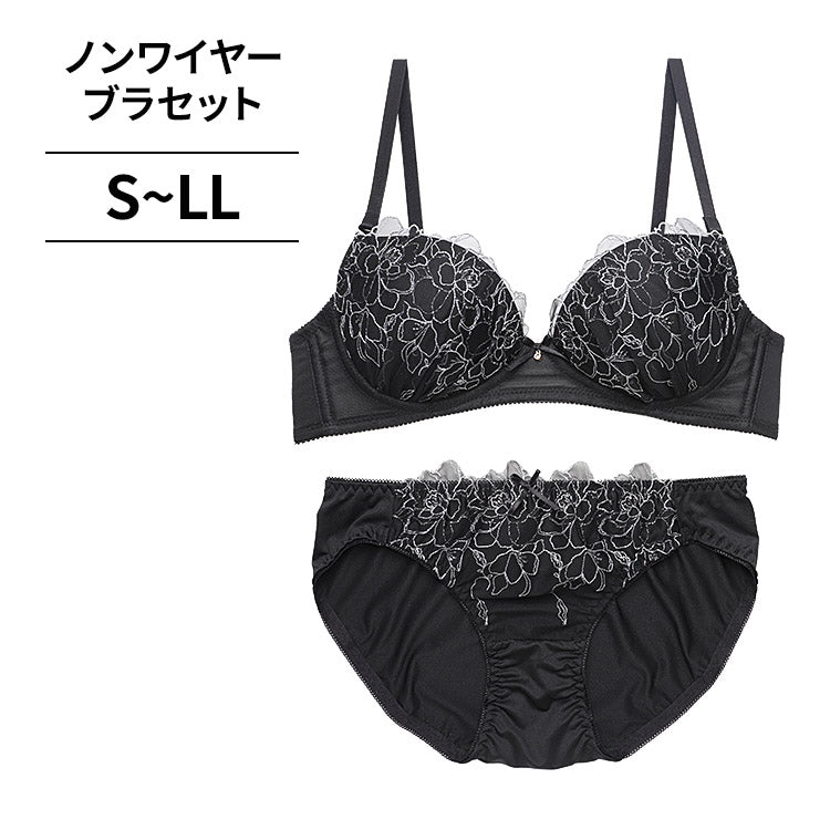 [まとめ買い対象]【12/10より順次発送】ノンワイヤーブラ&ショーツセット 花柄刺繍 【S/M/L/LLサイズ】 ba0994a
