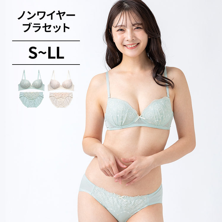 [まとめ買い対象]【12/10より順次発送】ノンワイヤーブラ&ショーツセット 花柄刺繍 【S/M/L/LLサイズ】 ba0995