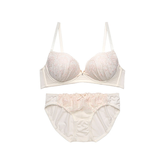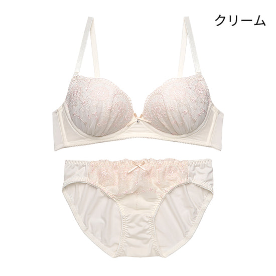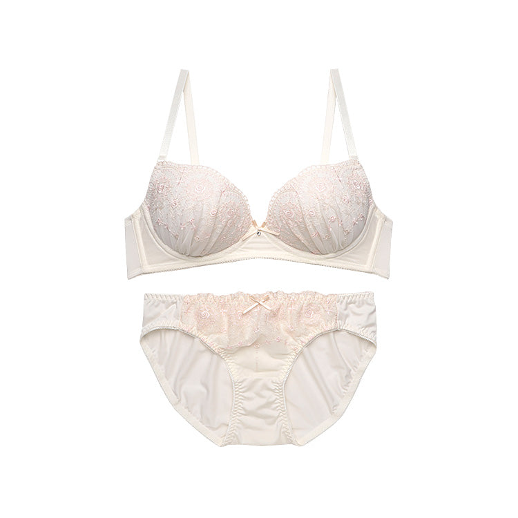 ノンワイヤーの快適さと、可憐なデザインを両立したブラ&ショーツセット