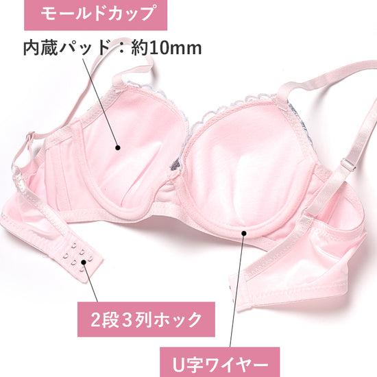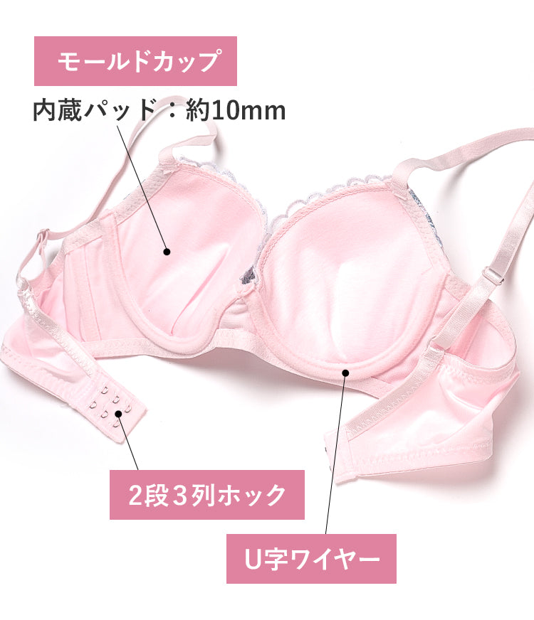 | 仕様 | [ブラ] カップ:3/4カップ ホック:2段3列 パッド:厚内蔵パッド(約10mm)・パッドなし(ポケットなし) ストラップ:取り外し不可・幅約10mm ワイヤー:ミディアムワイヤー入り(U字) サイドボーン:あり 脇の高さ:約8.5cm [フルバックショーツ] 透け感:ややあり クロッチ当て布:あり 伸縮性:タテ○ ヨコ○(バックのみ) |