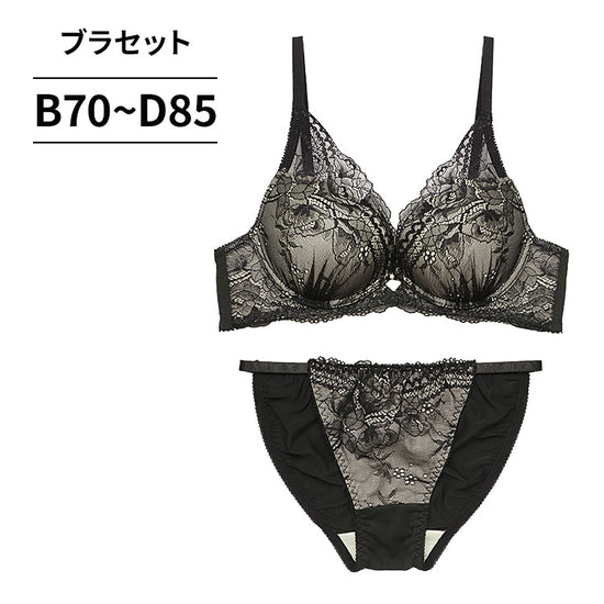艶やかなレースが奏でる、大人の色香。 洗練されたデザインとモールドカップで、理想の丸みと谷間を演出するブラセット。
